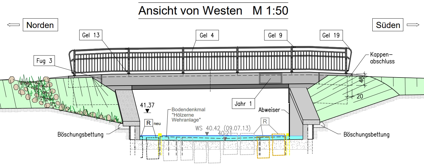 Oberstrom befindet sich eine Sohlgleite, die im Jahr 2012/2013 als Ersatz für einen Sohlabsturz errichtet wurde.