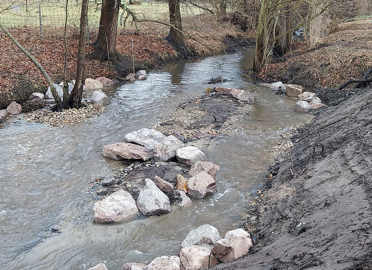 - Strecken mit Mindesthabitat zur Verbesserung der Gewässerstruktur: gesamt rund 5.100 m